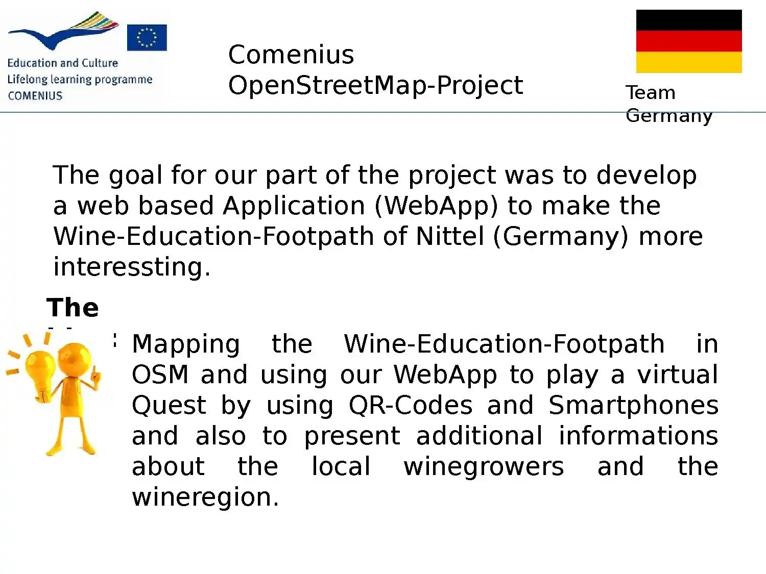 Sie wollen sehen, was unsere Partner gemacht haben - Ein Klick genügt.Comenius - To boost local and international tourism with OpenStreetMap - BoostOSM