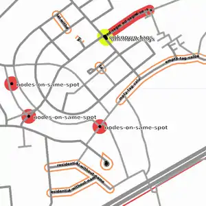 - Hier stimmt vermutlich etwas nicht. Die Ursache sollte nicht blindlings beseitigt werden, sonder erst überprüft werden, weil es nicht sicher ist, dass hier ein Fehler vorliegt. Z. B. könnte ein Segment ohne Weg einfach bedeuten, dass jemand sich (noch) nicht die Mühe gemacht hat, den Weg einzugeben. Es bedeutet nur, dass hier etwas korrigiert werden muss.