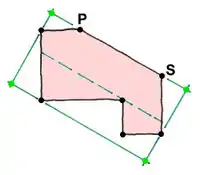 | Ein anderer Anfangspunkt S sowie Tagging von dem Punkt P um eine Bezugskante für die Berechnung
