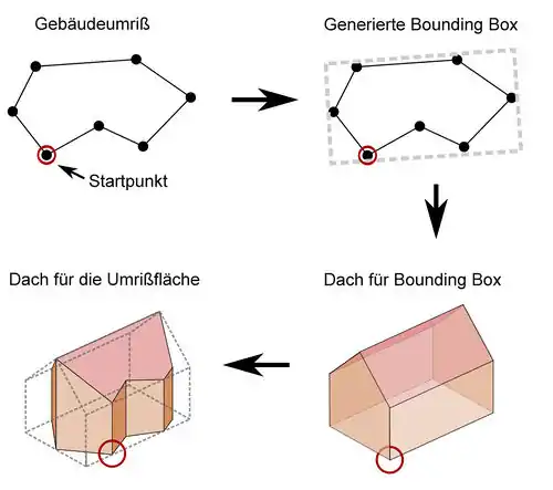 Dies entspricht auch dem typischen Fall. Leider ist in einigen Situationen die Ausrichtung von der Bounding Box nicht gleich mit der gewünschten Dachausrichtung.