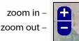 - Kartenausschnitt vergrößern/verkleinern: Schaltflächen oben links (+/-) anklicken oder die Tasten Page-up / Page-down verwenden.