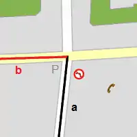 An N ist das Linksabbiegen von a nach b verboten. Damit ist rechts und geradeaus fahren erlaubt. Die weiteren drei Beschränkungen an dieser Kreuzung müssen alle einzeln definiert werden. |