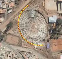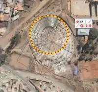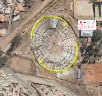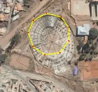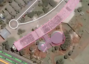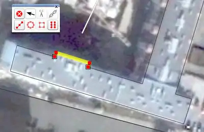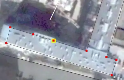 - Eine Umrißecke (auf diesem Bild die linke untere Ecke des gezeichneten Polygons) wir richtig über dem Luftbild platziert.