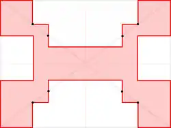 Wir sehen, dass sich beide Gruppen der Konstruktionslinien überlappen, wir können sie also zu einer Fläche verbinden