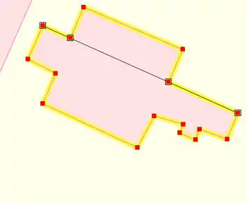 - Das neu gezeichnete (au diesem Bild rechte) Außenkante von dem kopierten Polygon soll