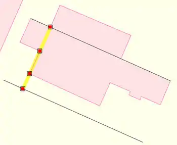 Manchmal haben wir im Gebäudeumriss mit kleinen, jedoch deutlich sichtbaren Vorsprüngen der Fassade zu tun. Obwohl man sieht, wo sie beginnen, kann man diese schwer nachzeichnen, weil in höherer Zoomstufe das Hintergrundsbild verschwindet. Man kann in Potlatch 2 wie folgt vorgehen: