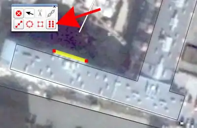 Wir tragen in den Gebäudeumriss 2 neue Punkte dort ein, wo der Vorsprung beginnt und endet.