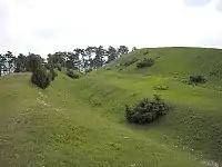 | Ein Wall ist eine Anhäufung von Erdreich ähnlich einem Damm |