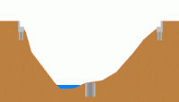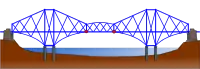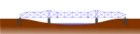 Der Gerberträger dürfte eine der häufigsten Bauformen von Auslegerbrücken sein. Die Konstruktion besteht aus einem langen Stahlfachwerkträger, der so mit Gelenken und Auflagen versehen ist, dass er statisch bestimmt ist. | |