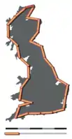 geschlossene Linie, ein Polygon. Unabhängig davon, ob sie einen ganzen Kontinent umschließt oder eine kleine Insel. Sie wird in OpenStreetMap aber immer in kleinere zusammenhängende Abschnitte geteilt, damit Renderer diese schnell berechnen können. Definitionsgemäß liegt dann das Land links von der Linienrichtung, das Meer rechts davon. Die einzelnen Abschnitte müssen vom Land aus gesehen also immer gegen den Uhrzeigersinn gerichtet sein.