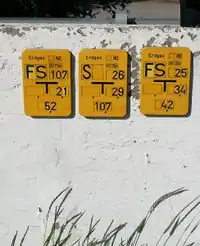Darunter befindet sich die Positionsangabe, welche die Lage das Schieberkastens vom Hinweisschild aus beschreibt. Auf dem Beispielbild für die Wasserversorgung zeigt das Hinweisschild für den Schieber S 80 0.0, 0.5 und 0.3. Der Schieberkasten befindet sich also 50 cm vor und 30 cm rechts des Hinweisschildes. Als Schlüssel position=0.0;0.5;0.3