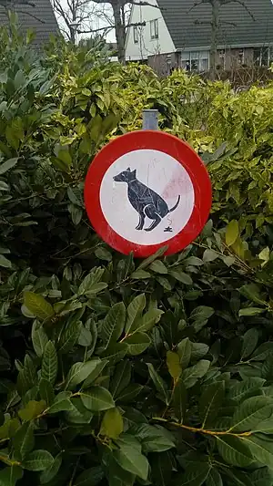 Verboten ist hier ja eigentlich nicht das Abkoten an sich, sondern das Liegenlassen von Hundehaufen. Da jeder Hundehalter (zumindest in Deutschland) flächendeckend dazu verpflichtet ist, durch seinen Hund verursachte Verunreinigungen zu entfernen (sprich: Hundehaufen mitzunehmen, am besten per Kotbeutel), erübrigt sich das Tagging. Das Schild schafft keinen Sachverhalt, sondern erinnert nur daran. --Kreuzschnabel (talk) 12:08, 9 February 2016 (UTC)