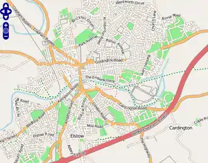 Indtast navnet på en by/vej/sted i søgeboksen ved siden af kortet - se Søg for mere information.