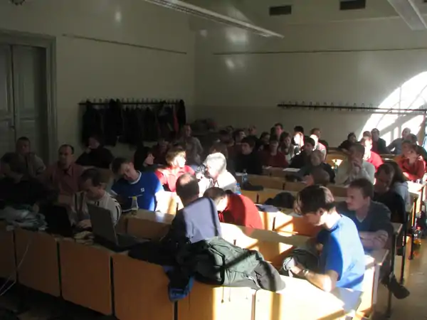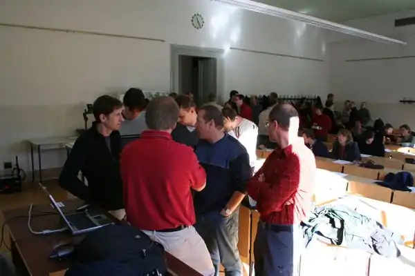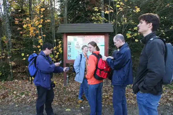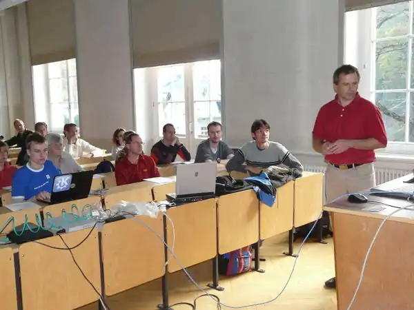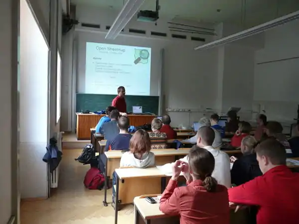 Zum Vortrag ab 10:00 waren ca. 40 Teilnehmer erschienen. Die aufgeworfenen Fragen liessen breites Interesse, gleichzeitig aber auch die Weitlaeufigkeit des Themas erkennen. Beispielsweise wurde die Frage diskutiert, ob man alle Wege erfassen soll, auch wenn dies eventuell dem Naturschutz schadet oder privates Recht eine Rolle spielen kann. Bei den anschliessenden Wanderungen wurden reichlich GPS-Daten gesammelt. Im Hoersaal am Projektor und in kleineren Gruppen im Seminarraum wurde am spaeten Nachmittag dann fleissig editiert und erklaert. Besonderen Dank an die UNI in Tharandt, fuer die Bereitstellung der perfekten Infrastruktur inklusive Projektor und superschnellem Internet.