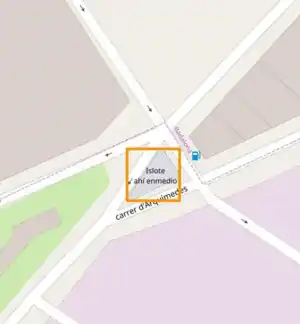 Cuando la calle es particularmente ancha o por cuestiones de micromapeo, algunos mapeadores optan por apoyarse en un elemento
