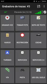 - Instalarse en el móvil la aplicación OSM Tracker disponible para Android en el Google Play. Esta aplicación está enfocada para hacer trabajo de campo con OSM, de forma que permite grabar una track e incluir en la misma anotaciones, grabaciones de audio o fotografía geolocalizadas. Más información aquí