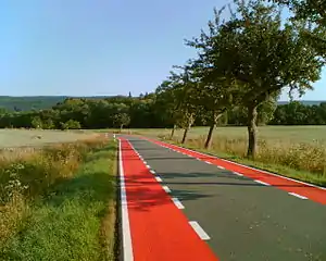 | Carriles bici o bicisendas proporcionadas dentro de la calzada o junto a ella, lo mismo en ambos sentido. |