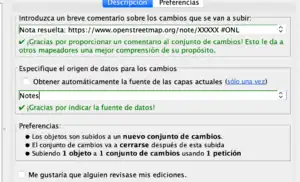 - También se puede usar iD, y activar la capa de notas. Este edito sube automáticamente los comentarios de las notas, y descarga los datos de la zona de trabajo automáticamente.