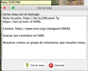 Nota resuelta: https://www.openstreetmap.org/note/XXXXX #ONL