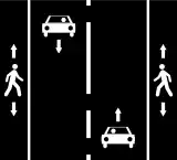 Un cruce entre una vía peatonal y una vía de circulación puede ser representado como un punto (highway=crossing) y como una línea (footway=crossing).
