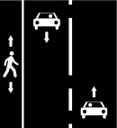 | permissive | Los peatones no tienen ningún derecho legal pero el propietario los permite en esta vía |