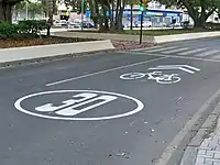Además de carriles bici convencionales, en Málaga también existen carriles compartidos con tráfico motorizado señalizados con una marca horizontal o pictograma. Se suele reservar el carril derecho de la calzada en estos casos.