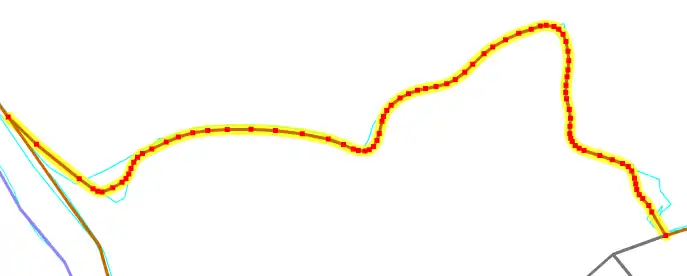 This is the same 2-kilometer road - but this will look much better on the map, and gives the map user a better sense of the curves of the road. You can see the road on the map. You can also see that other mapping services have a similar degree of accuracy.