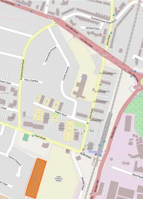 October 2014: Added new frontage at Ponders End Park and generally resurveyed.