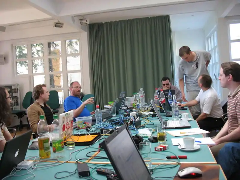 At least on one day, I got them in the room to take a fake picture. At least Nick Black, Jörg Ostertag, Steve Coast, Hakan, the unvisible man, Dirk and Jochen did attend: