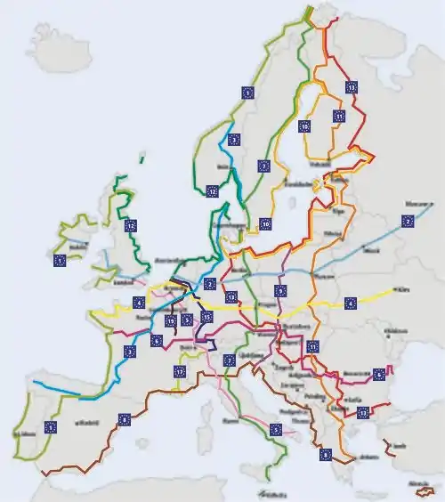 EuroVelo is the European cycle route network, is a project of the European Cyclists' Federation to develop 17 long-distance cycle routes crossing Europe. The planned total length is more than 90 000 km.