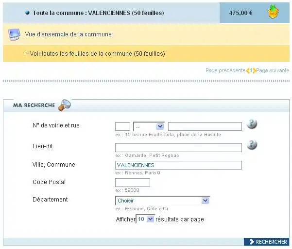 Aller sur le site du cadastre et saisir le nom de la commune...
