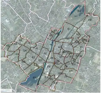 Chaque commune est composée de parcelles (feuilles) dont chacune est identifiée par des chiffres et des lettres. Ci dessous les feuilles (avec leurs identifiants) composant le tableau d'assemblage de la commune de Valenciennes.