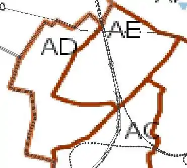 Ci dessous une image constituée de la juxtaposition des deux images ci dessus. On remarque en bas à droite de la limite administrative communale n'est pas la même entre la feuille de nom AX du cadastre et le Géoportail.