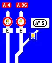 Pour les véhicules transportants ces matières dangereuses, une voie obligatoire est souvent précisé en aval sur un fond bleu.
