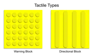Les bandes podotactiles sont des dispositifs au sol conçus pour aider les personnes atteintes de déficiences visuelles à se déplacer en toute sécurité dans les espaces publics. Il existe deux types de bandes podotactiles: la bande d'éveil à la vigilance (BEV) et la bande de guidage. Les BEV sont utilisées pour signaler un danger imminent, tandis que les bandes de guidage sont conçues pour guider les personnes malvoyantes ou aveugles sur un itinéraire sûr.