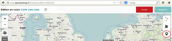 Pour ajouter un point sur la carte, cliquez sur le 3e bouton à droite, puis placez votre point à l'endroit où vous le souhaitez.
