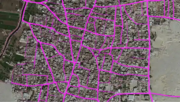 Currently, Facebook is only directly generating and mapping AI roads, although other data sets such as Microsoft's AI building footprints are available in RapiD. We use the latest deep learning algorithms to assist road extraction and mapping. Here is an example of a prediction using deep learning for an area in Egypt. Initial, predictions are in a raster (image) format rather than a vector format suitable for mapping.