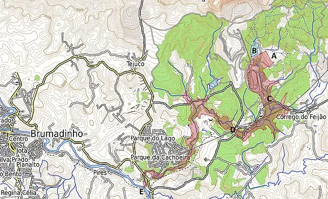 - English : A map of the Brumadinho dam disaster. OpenStreetMap contributors were able to use Sentinel-2 imagery to produce a detailed outline of the mudflow, within days of the disaster. This map, on an OpenTopoMap base map, illustrates the wikipedia article.