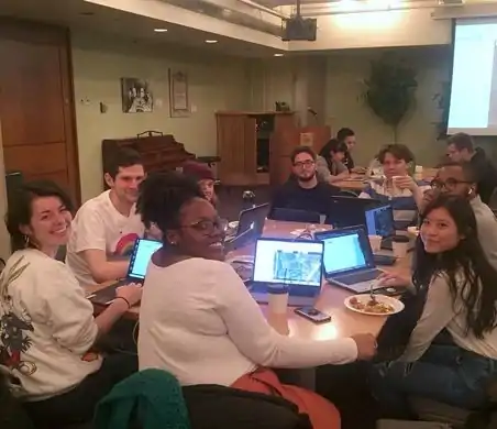 - English : Tobler Society Mapathon at the University of Chicago. Students started the first Chapter of YouthMappers in Chicago earlier this year.