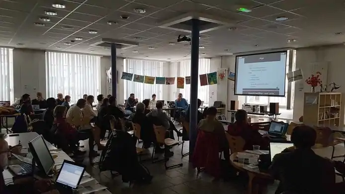 - English : Paul Desgranges giving a talk introducing OpenStreetMap at Flosscon Grenoble this weekend.