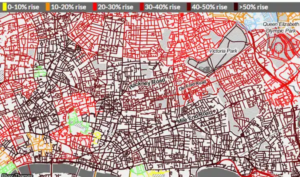 - English : Transport campaigning website howcongestedismyroad.org.uk shows traffic modelling data from Transport For London, snapped onto OpenStreetMap road network data and overlaid over Stamen's black & white toner style base-map