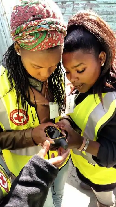 - English : Volunteers verifying their position. The American Red Cross recently ran a community mapping exercise in Khayelitsha, a large township in Cape Town, South Africa. Read more on this diary entry including ways you can help with the ongoing mapping work
