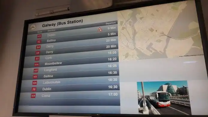 - English : OpenStreetMap in the information screens of the Ireland bus company Bus Éireann.