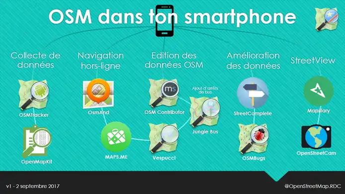 - English : A selection of Android apps for different types of OpenStreetMap contribution and use, presented by Claire Halleux at a recent mapathon in Kinshasa.