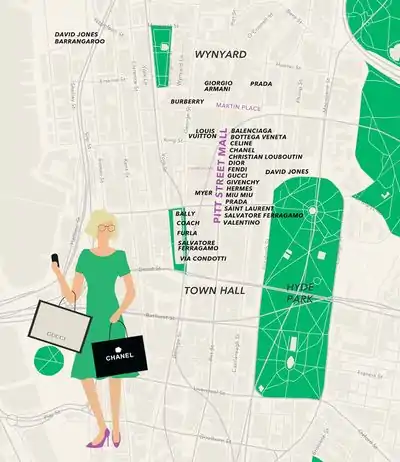 - English : Where to shop in Sydney when you want to shop big - Created with Maps for Adobe ArcGIS extension, and a vector base map from OpenStreetMap