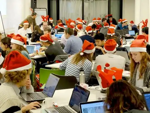 - English : Santa hats and reindeer headgear at the Missing Maps Christmas Mapathon in London. Mappers gathered to do humanitarian mapping "putting the worlds vulnerable people on the map". One of a series of popular events called the Missing Maps Project