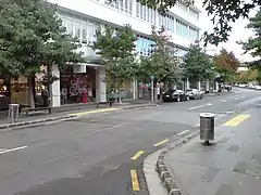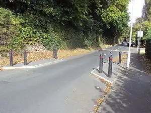 | traffic_calming | chicane | Shikaani, mutkittelemaan pakottavat esteet muutoin suoralla tiellä. Huom: kevyen liikenteen väylillä on käytössä myös tagi barrier=chicane, joka estää autoliikenteen ja voi estää pyöräilijöiden kulun kapeutensa takia. Käytössä Suomessa erityisesti asuinaluekaduilla. | ![]() | ||