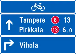 Seudullinen pyöräreitti kulkee kahden tai useamman kunnan alueella. Opasteet vaihtelevat paikkakunnittain.