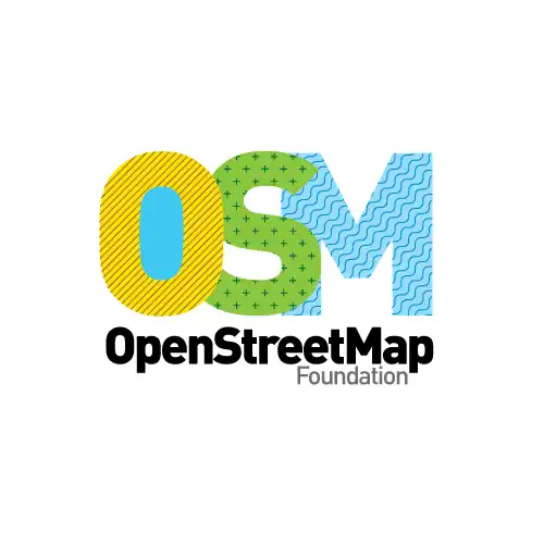 An overlapping road forming the "O" of OSM and the "F" of Foundation