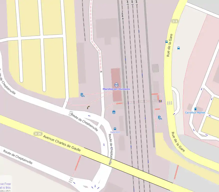 - Parkings proches, voir associés avec la gare (P+R) avec tarification / gratuité ; présence & nombre d'emplacements pour PMR ; durée maxi de stationnement